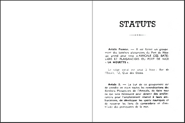 –3) M. SEIGNON (président provisoire).L’Association des Bateliers Plaisanciers du Port de Nice, l’ABPPN La Mouette Les Pointus de Nice à été fondée en 1928